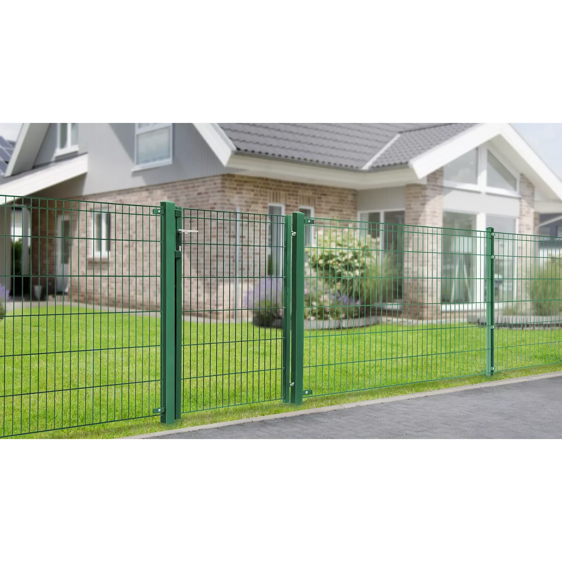 Das Tor besteht aus hochwertigem, feuerverzinktem und pulverbeschichtetem Stahl, der für Langlebigkeit und Witterungsbeständigkeit sorgt.