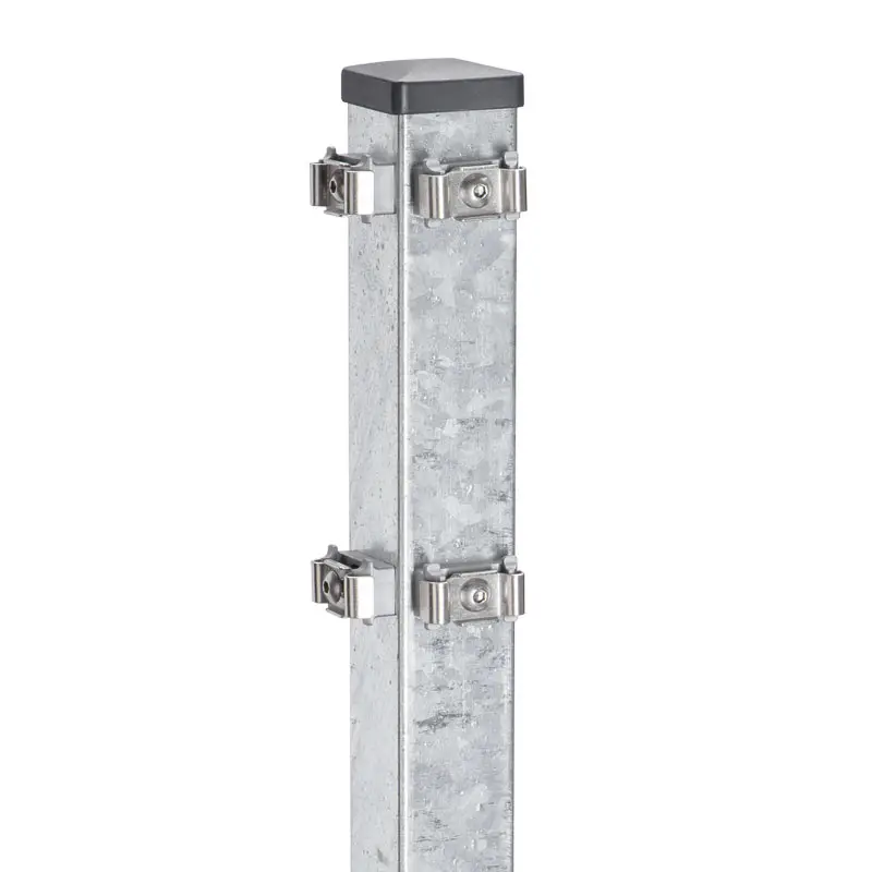 Dank der feuerverzinkten Beschichtung ist der Eck-Zaunpfosten sehr witterungsbeständig und eignet sich hervorragend für den Außeneinsatz.