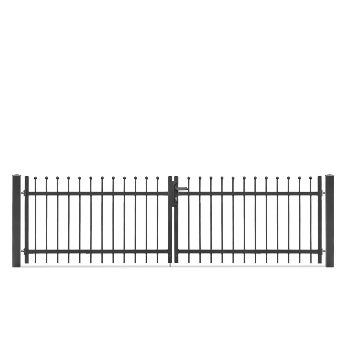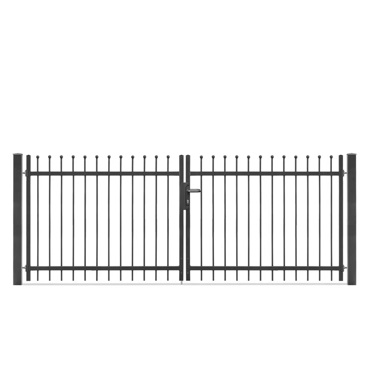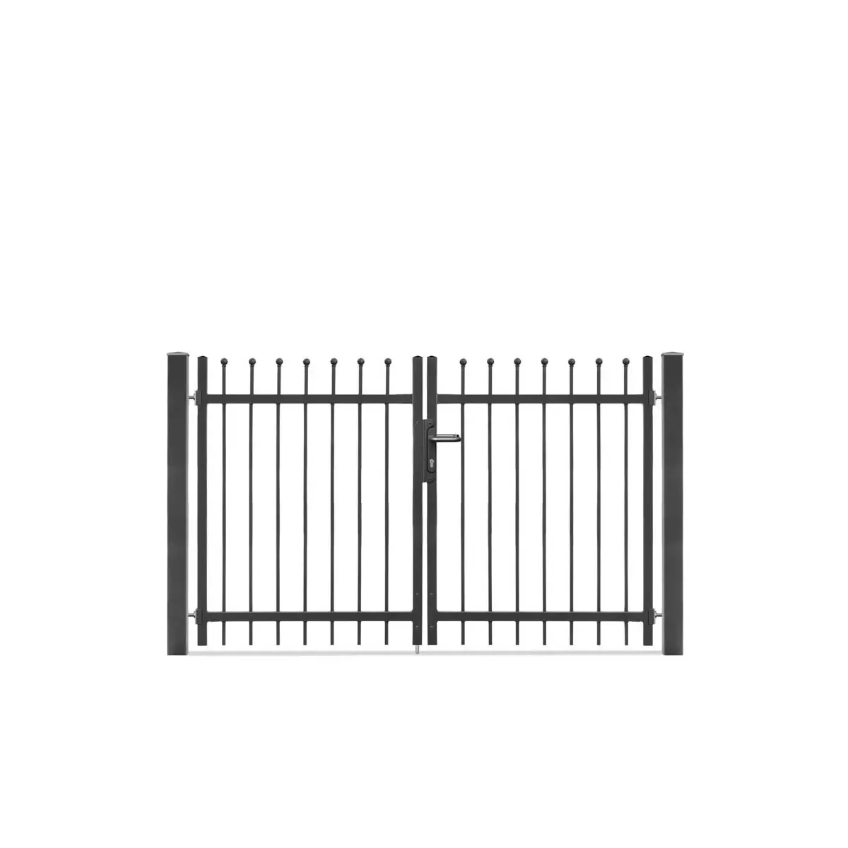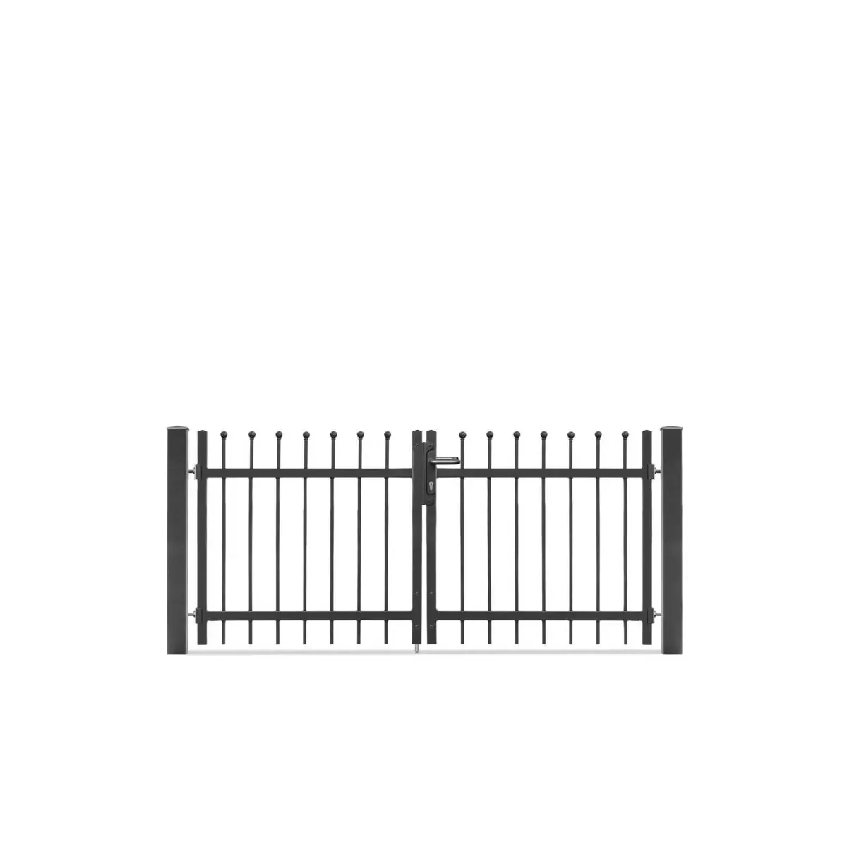 Im Lieferumfang ist das Metalltor DAVOS 2-flg inklusive Torpfosten und Montagezubehör enthalten. Dadurch hast Du alles, was Du für eine unkomplizierte Installation benötigst.