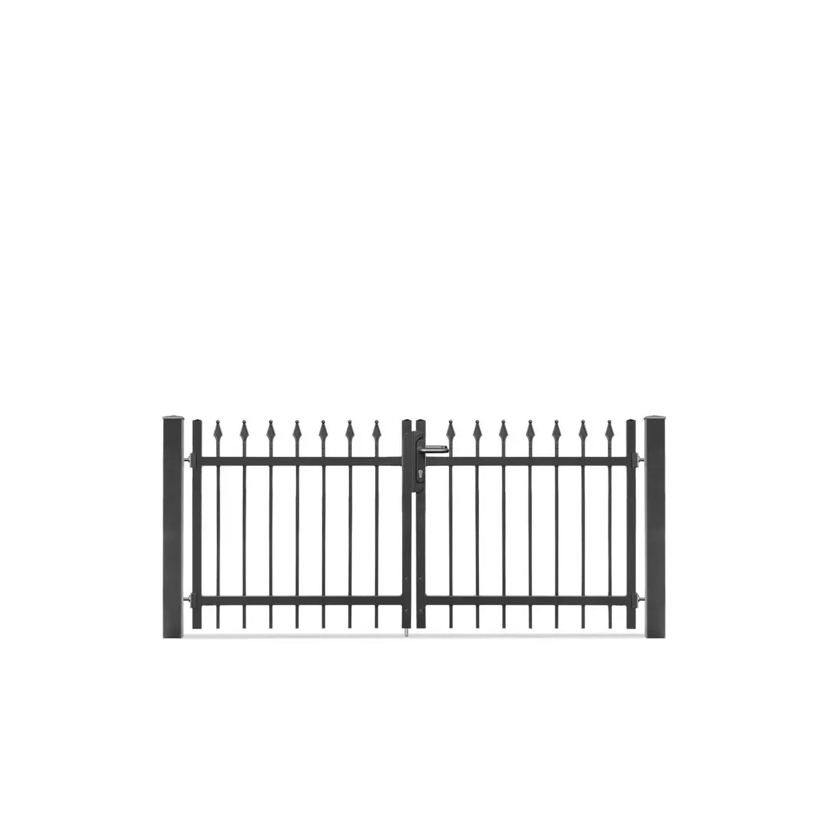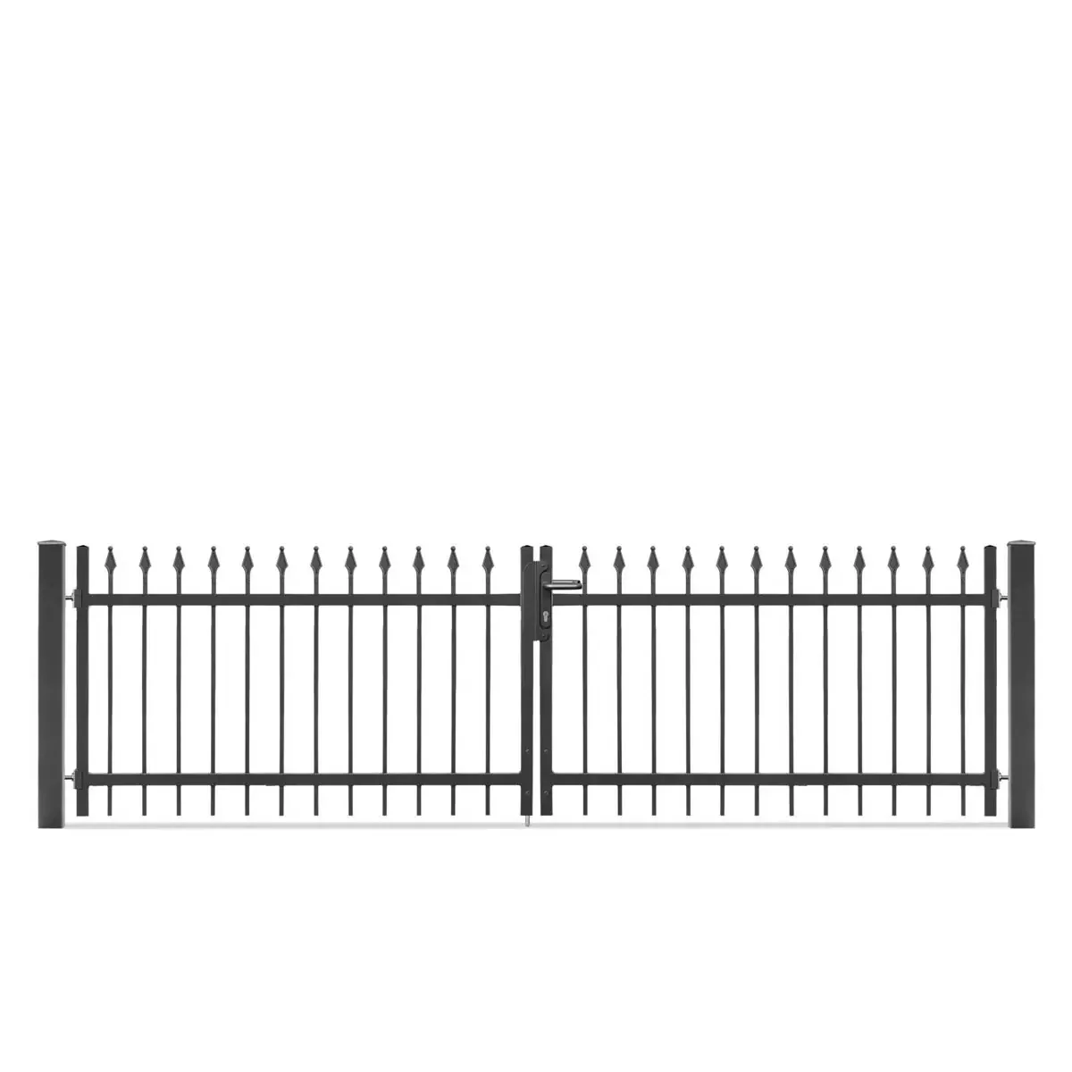 Das Metalltor ZERMATT ist in zwei Breiten (2095 mm, 3215 mm) und zwei Höhen (900 mm, 1200 mm) erhältlich.