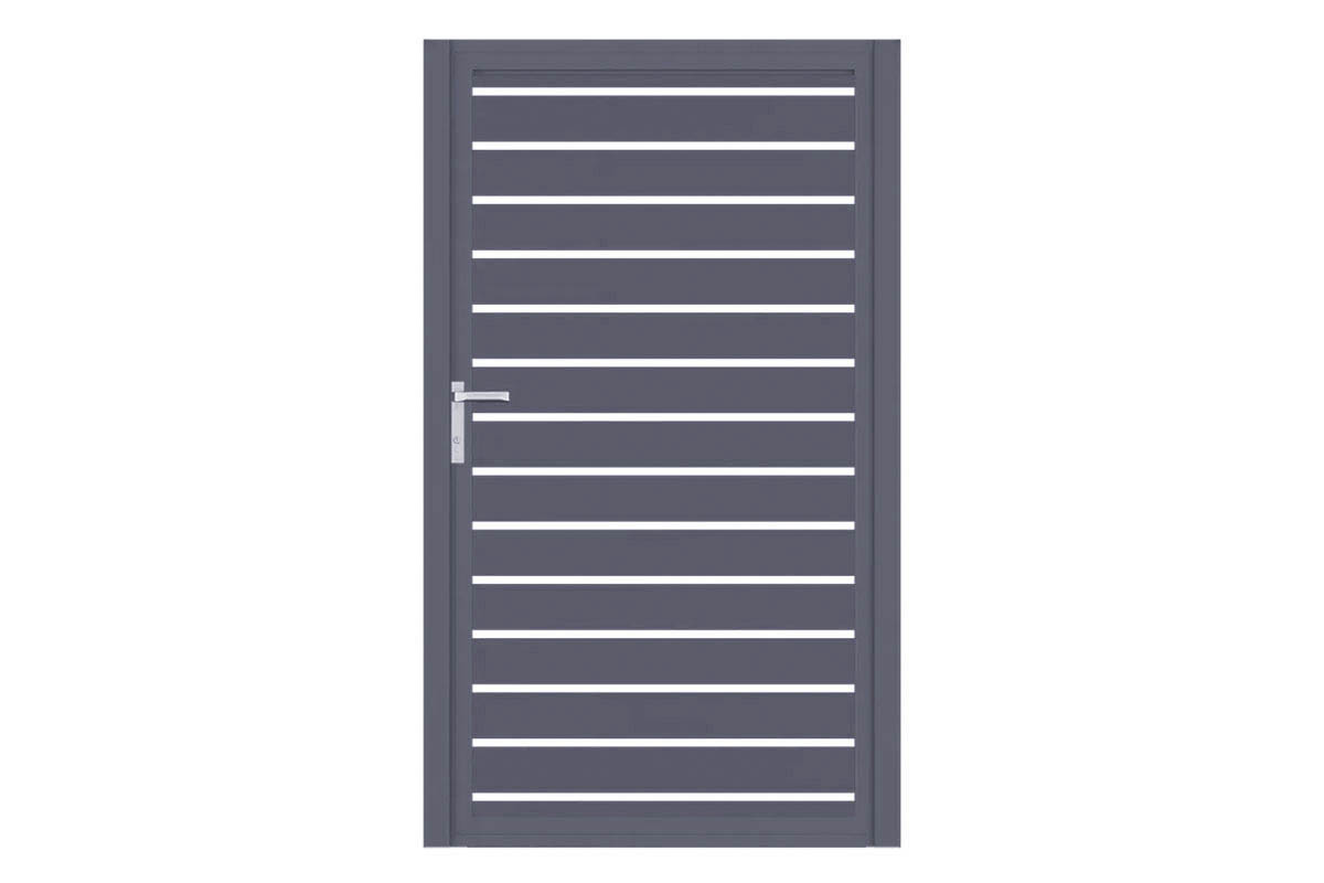 Suchst Du nach einer eleganten und langlebigen Lösung für Deinen Garten? Das VIDUAL swing line 100 1-fl Aluminiumzaun-Tor ist die perfekte Wahl, um Deinen Sichtschutzzaun aufzuwerten. Gefertigt aus hochwertigem Aluminium und pulverbeschichtet im edlen RAL 7016 (Anthrazitgrau Feinstruktur), verbindet es ansprechendes Design mit erstklassiger Funktionalität.