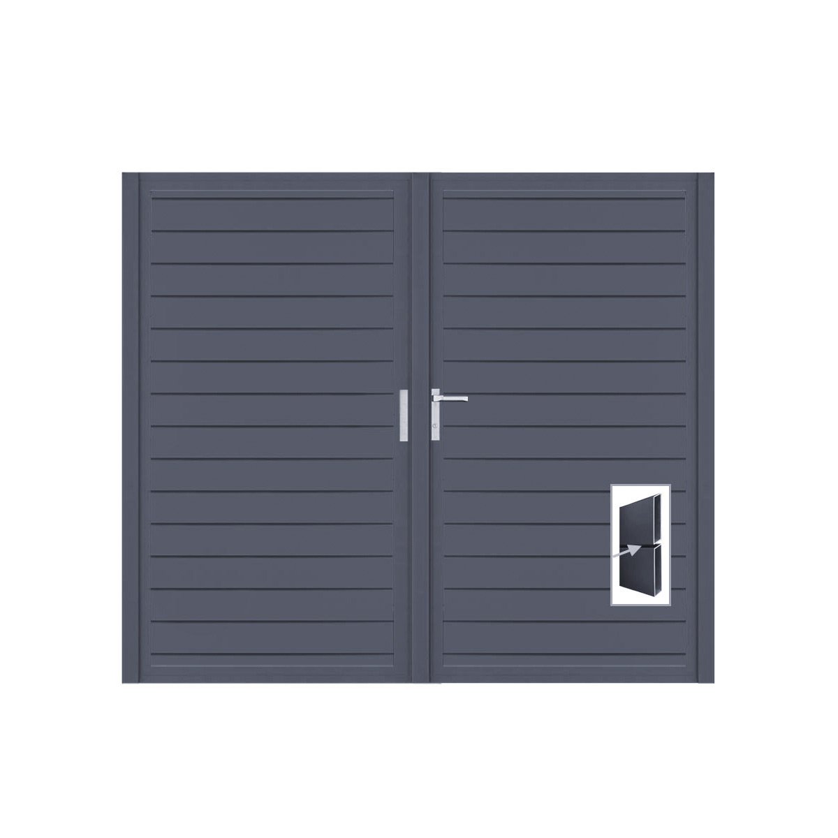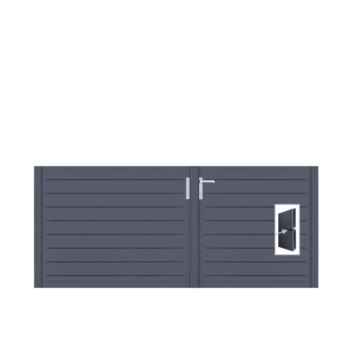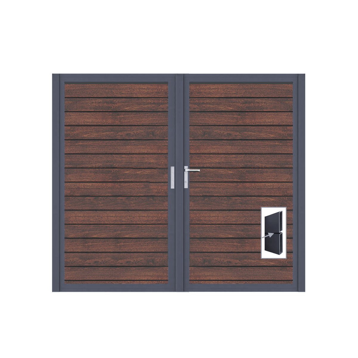 Das Tor ist aus robustem Aluminium gefertigt und pulverbeschichtet in anthrazitgrau (RAL7016FS) oder mit einer Dark Oak Füllung erhältlich. Du kannst Dein Design individuell gestalten! Unsere hochwertigen Materialien sorgen dafür, dass das Tor extrem langlebig und pflegeleicht ist.